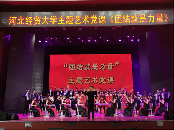 2021年6月16日,“团结就是力量”主题艺术党课在河北经贸大学礼堂举办
